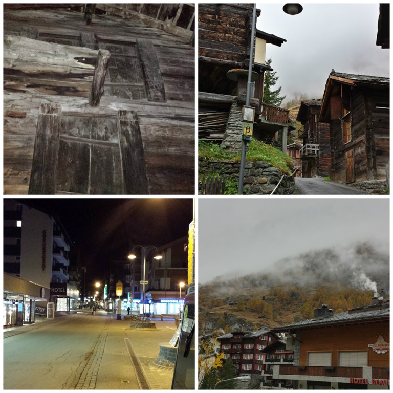 Aber zu den guten Dingen. Am Freitag hatten wir einen schönen Tag erwischt, nicht sonnig, aber hell genug um schöne Fotos zu machen und ein wenig vom Ort zu sehen. Zermatt ist, wenn man ankommt, eine hässliche Stadt, typisch touristisch und ohne individuelles Flair. Erst wenn man ein wenig herumspaziert und weg geht von den Hotels wird es interessant und durch die speziellen Holzhäuser sogar sehr stimmungsvoll. Gelegen ist das Dörfchen in einer wunderbaren Gegend die zu erkunden man sich mehr Zeit nehmen müsste…